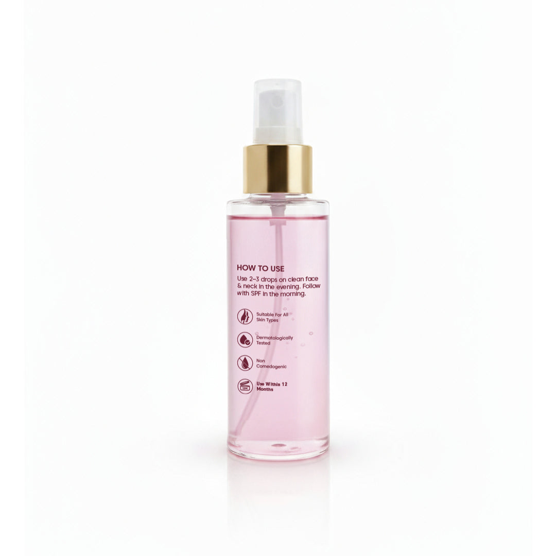 • After cleansing, apply a few drops to cotton pad/palms & sweep over face & neck